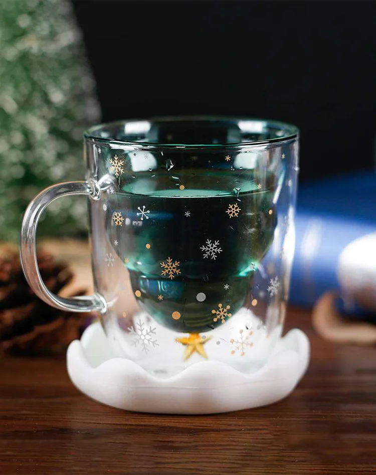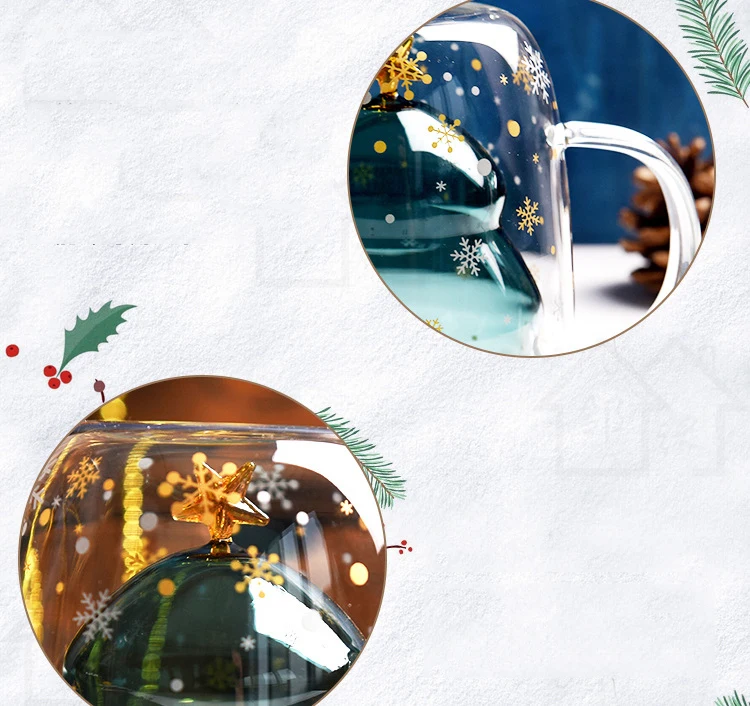 Рождественская чашка, двухслойная, анти ожогов, стекло, рождественская елка, звездное небо, кофейная кружка, теплоизоляция, чашка для молока, детский подарок