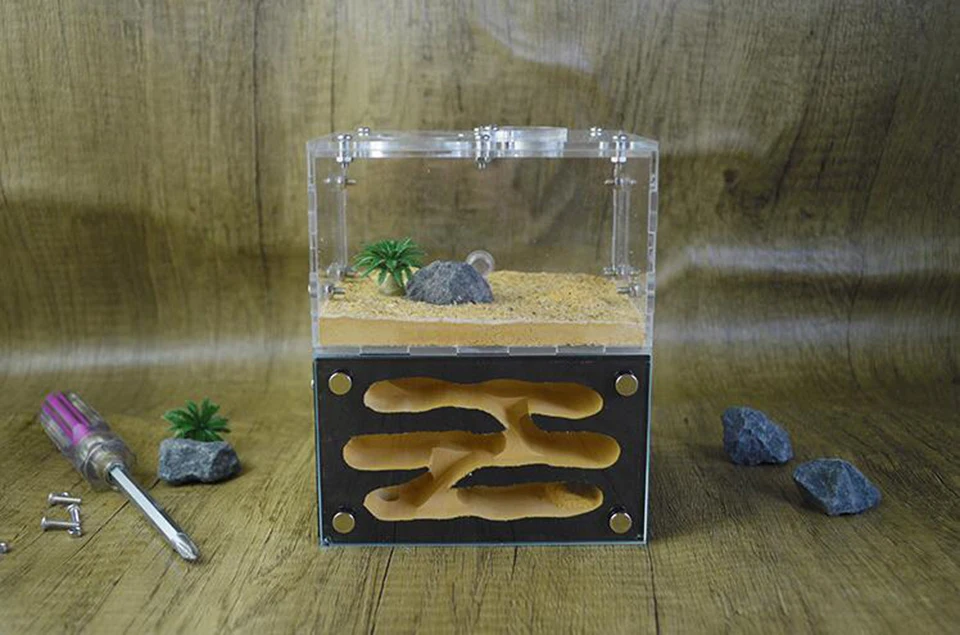 Имитация оригинального экологического бетонного гнезда муравья замок мастерская дома Материал: акрил + бетон Цвет: черный Размер активной зоны: 12*9*7,5 см Односторонний размер гнезда: 12*13,5*7,5 см Размер двустороннего гнезда: 12*9*15 см Применение: муравья, разведенные в маленьких колониях Упаковка: картонная упаковка