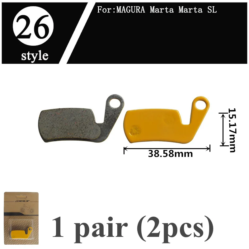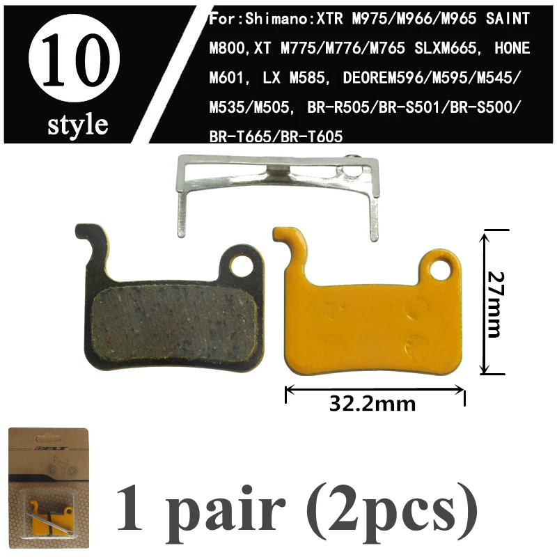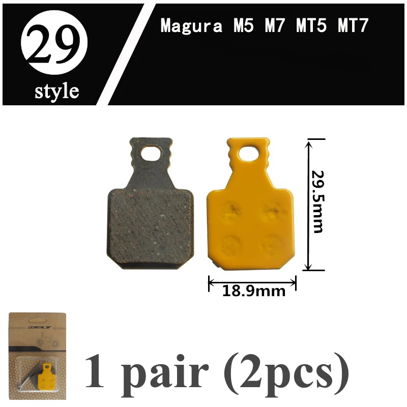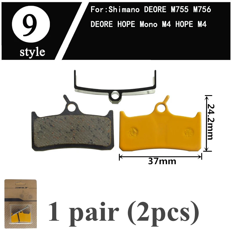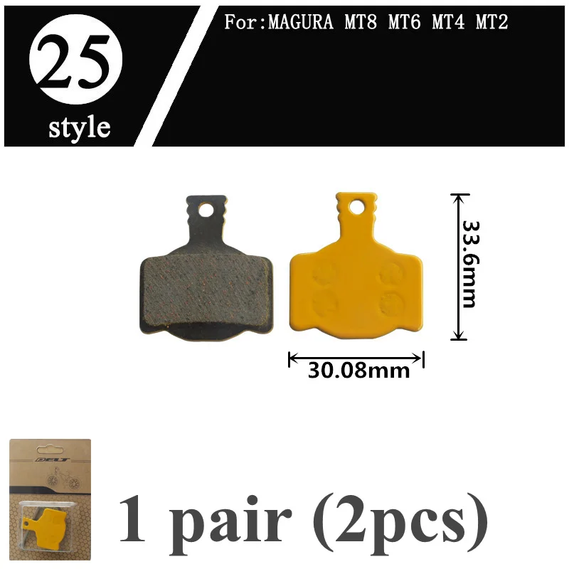 -Name: Mountain bike brake pads-Pad thickness: steel back and friction material 4mm-Material: Ceramics-Package included: 1 Pair (L+R 2PCS)-Compatibility: same shape/size bicycle brake pads, - Style 1: FOR SRAM AVID Elixir E1/3/5/7/9 ER/CR Mag xo xx WORLD CUP - Style 2: FOR SRAM AVID BB5 - Style 3: FOR SRAM AVID XO E7 E9 TRAIL 4 Pistions - Style 4: FOR SRAM AVID BB7 J3 J5 J7 JUICY7 JUICY3 JUICY5 - Style 5: FOR SRAM AVID CODE - Style 6: FOR SRAM AVID code R 2011-2014 - Style 7: FOR Shimano M315 M M355 M365 M375 M395 M396 M415 M416 M445 M446 M447 M475 M485 M486 M495 M515 M525 M552 M575 M3050 C501 C601 M4050 T615 T675 FOR Orion/Auriga PRO/Auriga Comp/Auriga EComp Draco WS/Aquila FOR TRP:HY/RD/Hylex/Parabox 2012/Spyre/Spyre SLC Rank - Style 8: FOR Shimano Saint M810 M820 ZEE M640 H01 - Style 9: FOR Shimano DEORE M755 M756 DEOREHOPE Mono M4 HOPE M4 - Style 10:FOR Shimano XT/R M975/M966/M965, SAINT M800,XT M775 M776/M765, SLX M665, HONE M601, LX M585, DEORE M596/M595/M545/M535 M505, BR-R505/BR-S501/BR-S500/BR-T665/ BR-T605 - Style 11:FOR Shimano XTR BR-M9000 BR-M9020 BR-M987 BR- M985 Deore XT BR-M8000 BR-M785 BR-M615 SLX BR-M7000 BR-M675 BR-M666 BR-S700 BR-CX77 BR-RS785 BR-R785BR-R517 BR-R317 - Style 12:FOR Shimano FORMULA MEGA THE ONE R1 RO RX ONE C1 - Style 13:FOR FORMULA ORO K18 ORO K24 ORO PURO FOR Giant Twins/DA7/DA6/ATX710 - Style 14:FOR HAYES Dyno Stroker Ryde - Style 15:FOR Hayes Sole MX2 MX3 MX4 MX5 CX5 GX-C GX2 JAK-5 - Style 16:FOR Hayes HFX-Mag Series HFX-9 Series MX1 - Style 17:FOR NOVELA Lyra L10.11 MD-C500 - Style 18:FOR IO NoveIA - Style 19:FOR NOVELA IOX .11 MD-M311 - Style 20:FOR ZOOM DB350 DB280 DB450 DB550 - Style 21:FOR ZOOM CMD-5 CMD-7 - Style 22:FOR MAGURA LOUISE 2007 BAT CARBON 2008 - Style 23:FOR Magura Julie - Style 24:FOR Magura Louise CLARA 2001 - Style 25:FOR MAGURA MT8 MT6 MT4 MT2 - Style 26:FOR MAGURA Marta Marta SL - Style 27:FOR SRAM AVID DB1 DB3 DB5 SRAM LEVEL - Style 28:FOR SRAM AVID Rival 22 S700 B1 Red 22 B1 Force 22, CX1