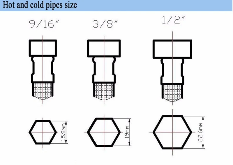 В разных странах разные размеры труб подходят для смесителя, пожалуйста, укажите правильный размер в сообщении о заказе, когда вы размещаете заказ, или мы отправим стандартный размер G1/2 трубы, надеюсь, вы понимаете!